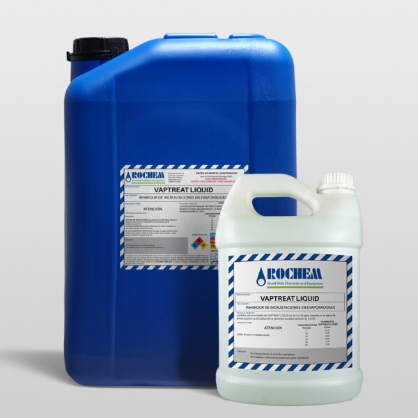 VAPTREAT LIQUID es una mezcla de polímeros sintéticos y agentes anti- espumantes, creada para prevenir depósitos y formaciones de espuma en los evaporadores de alta y baja presión. Es eficaz en agua de mar, salmuera y agua dulce.